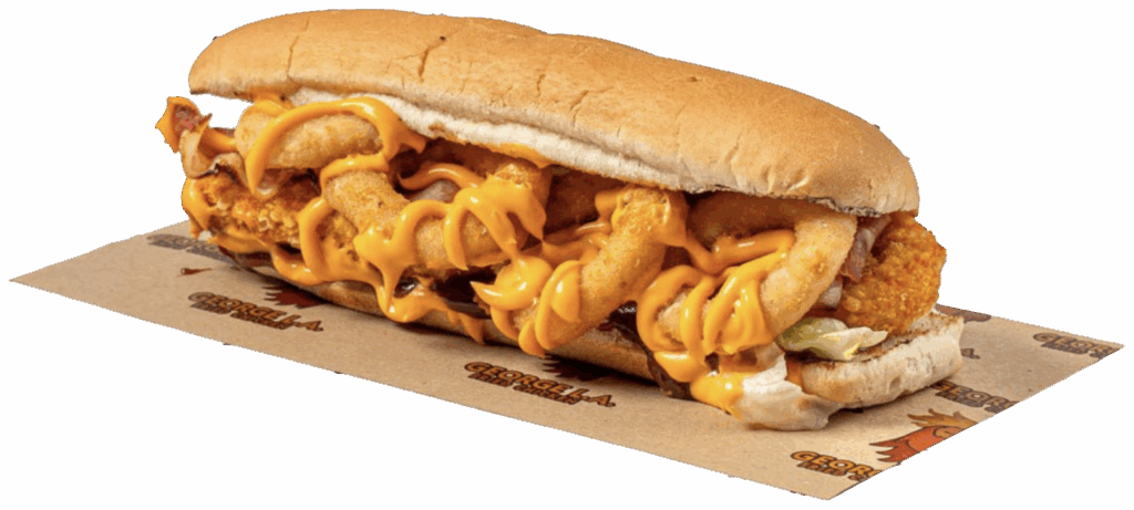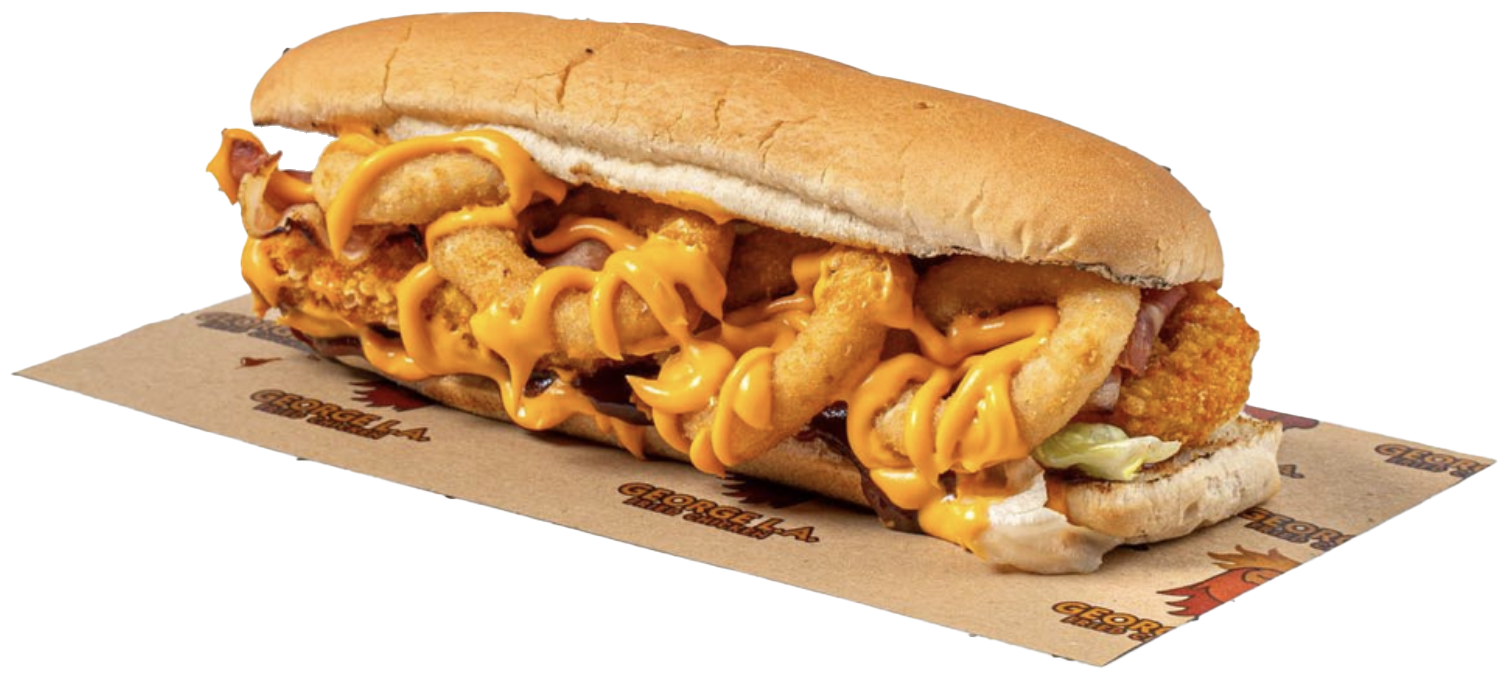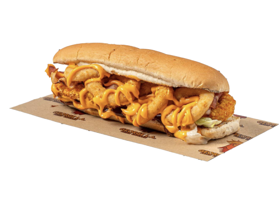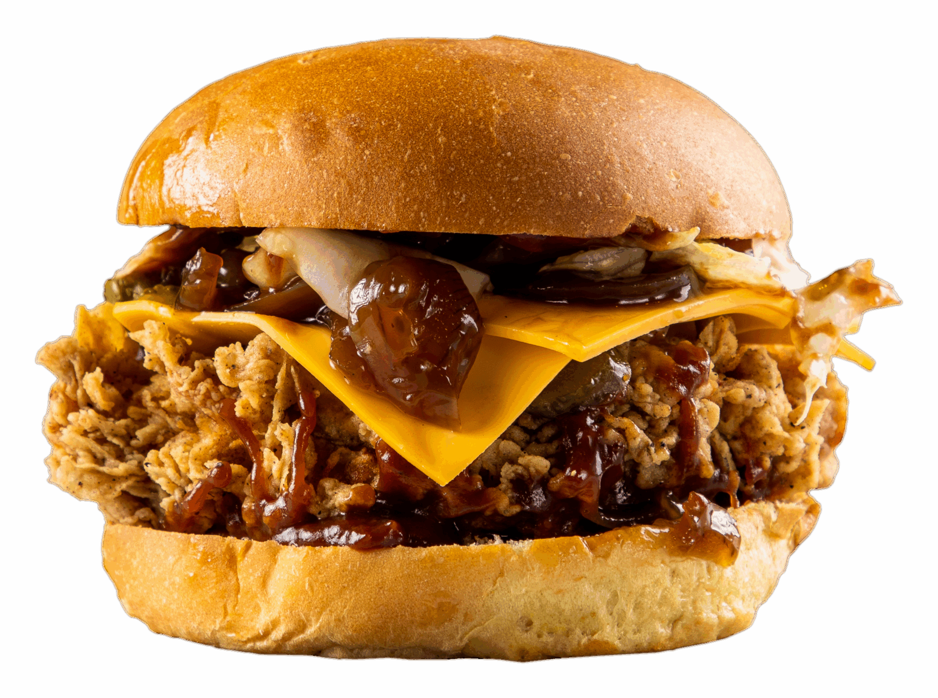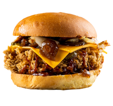 Με φιλετάκια από στήθος κοτόπουλο τραγανά, cheddar λιωμένο, μπέικον, onion...