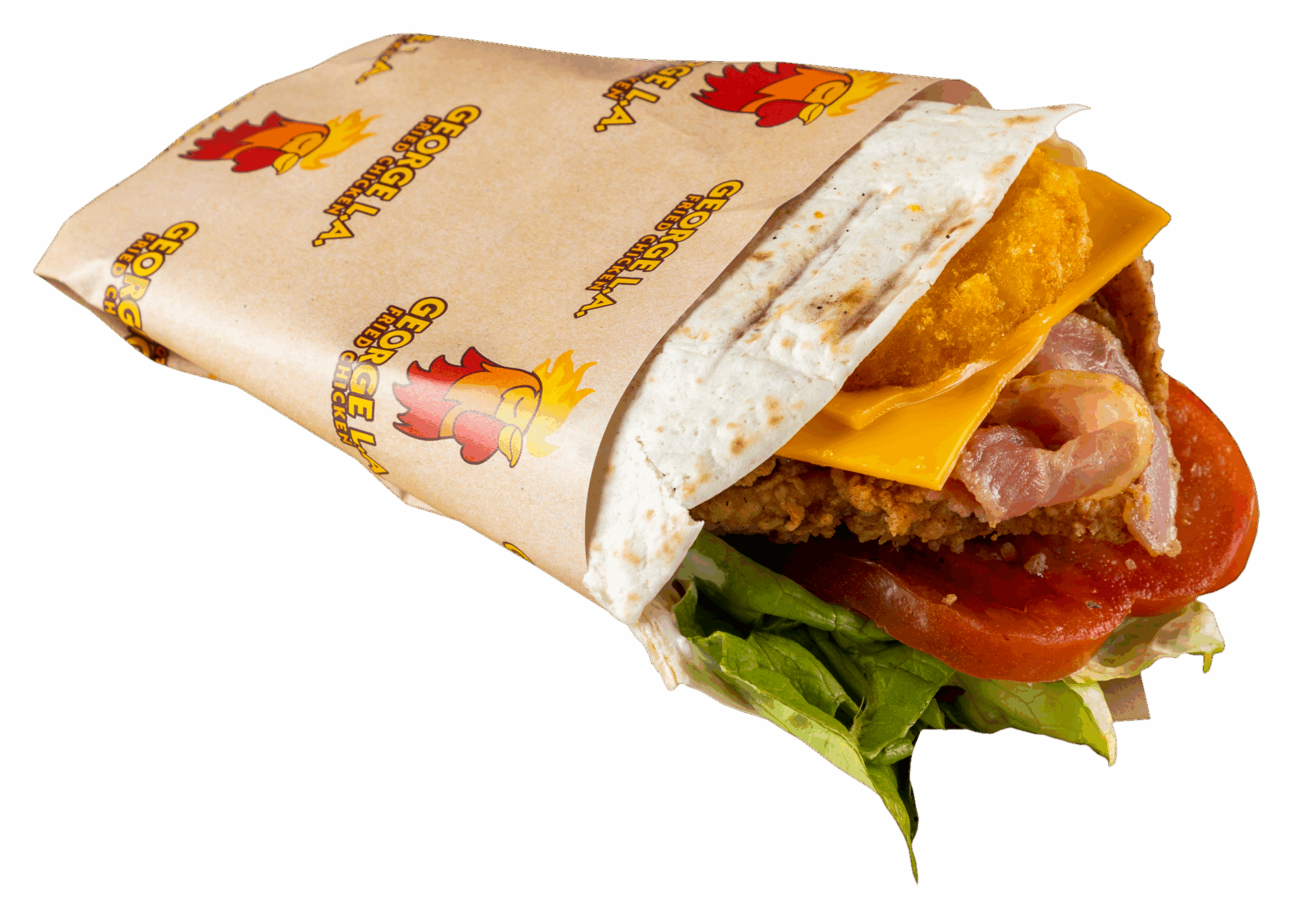 Με φιλετάκια από στήθος κοτόπουλο τραγανά, cheddar λιωμένο, μπέικον, iceberg,...