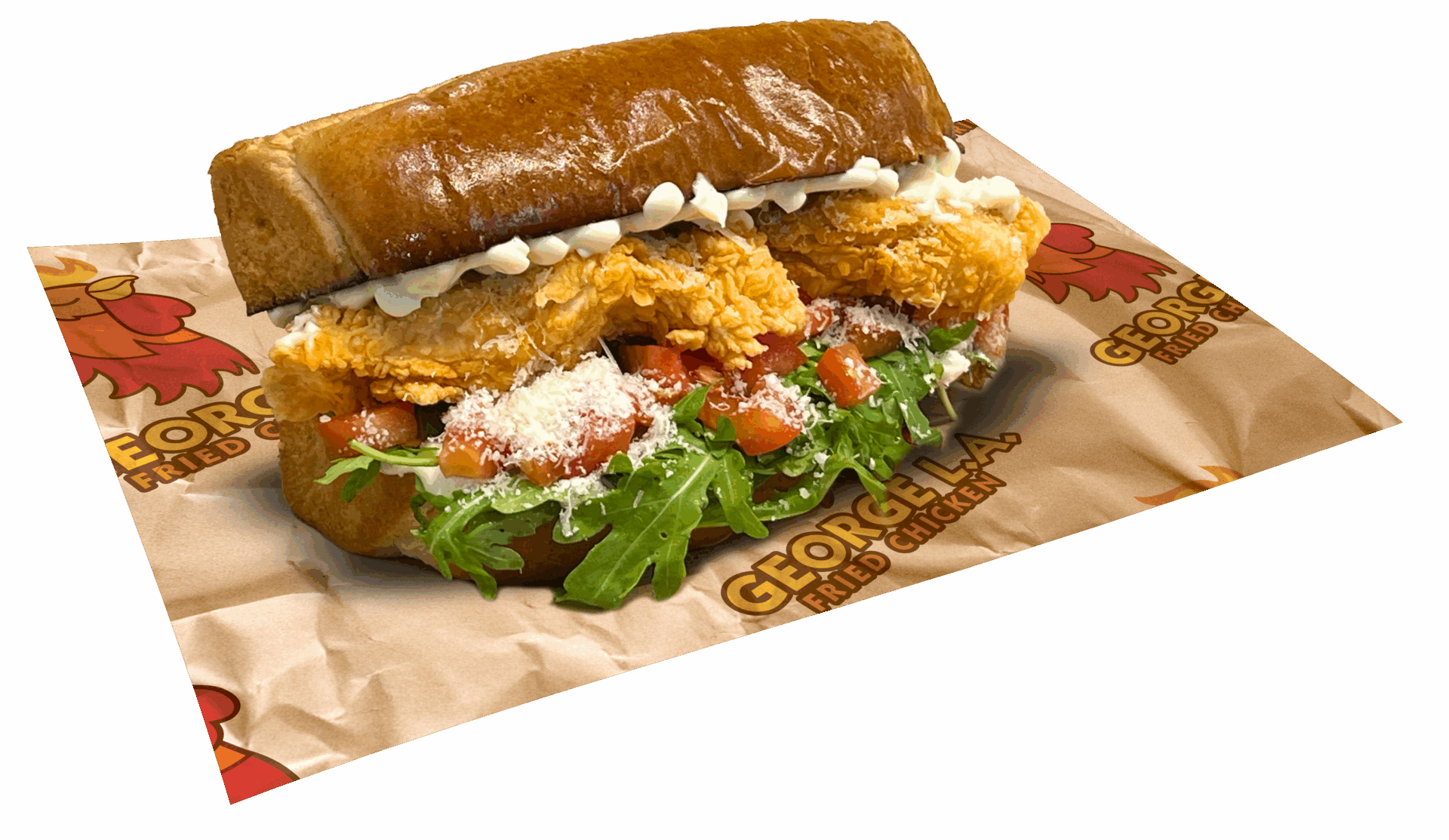Ψωμάκι brioche με φιλέτο στήθος κοτόπουλο πανέ, cheddar, μπέικον, ντομάτα,...